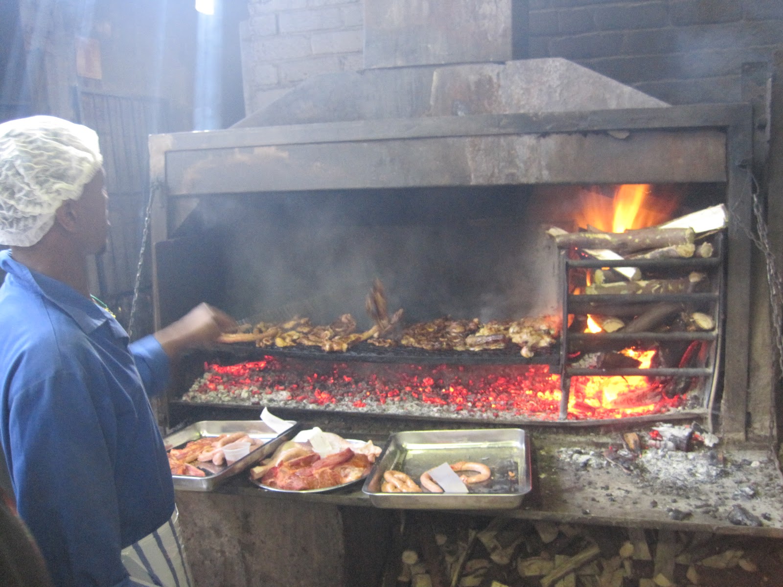 Once you have chosen your meat by weight it is taken to the braai (BBQ) area where they baste and flame it to perfection somehow keeping track of who ordered what.